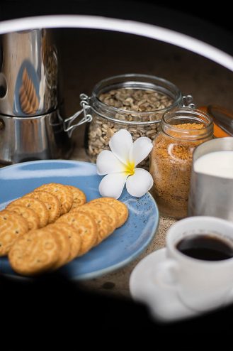 A wholesome breakfast per day are prepared by our staff. Help your self to Drinking water, tea, and coffee through out the day. We have no fixed menu but generally cook what is fresh and readily available lots of fresh fish, prawns, meat dishes, with plenty of fresh fruit and vegetables from local farmers markets – both western style and Indonesian always adding fresh ingredients from our garden.